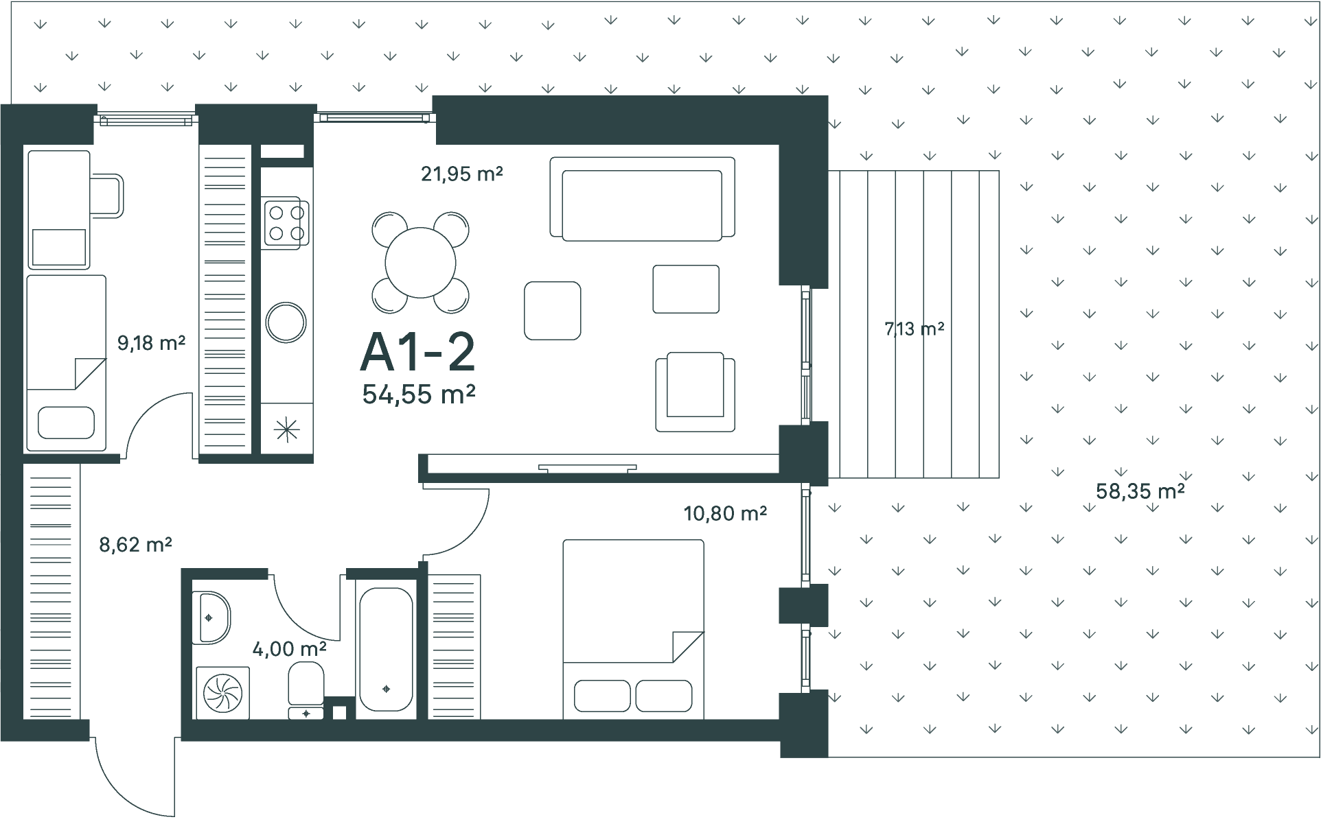 54,55 m²