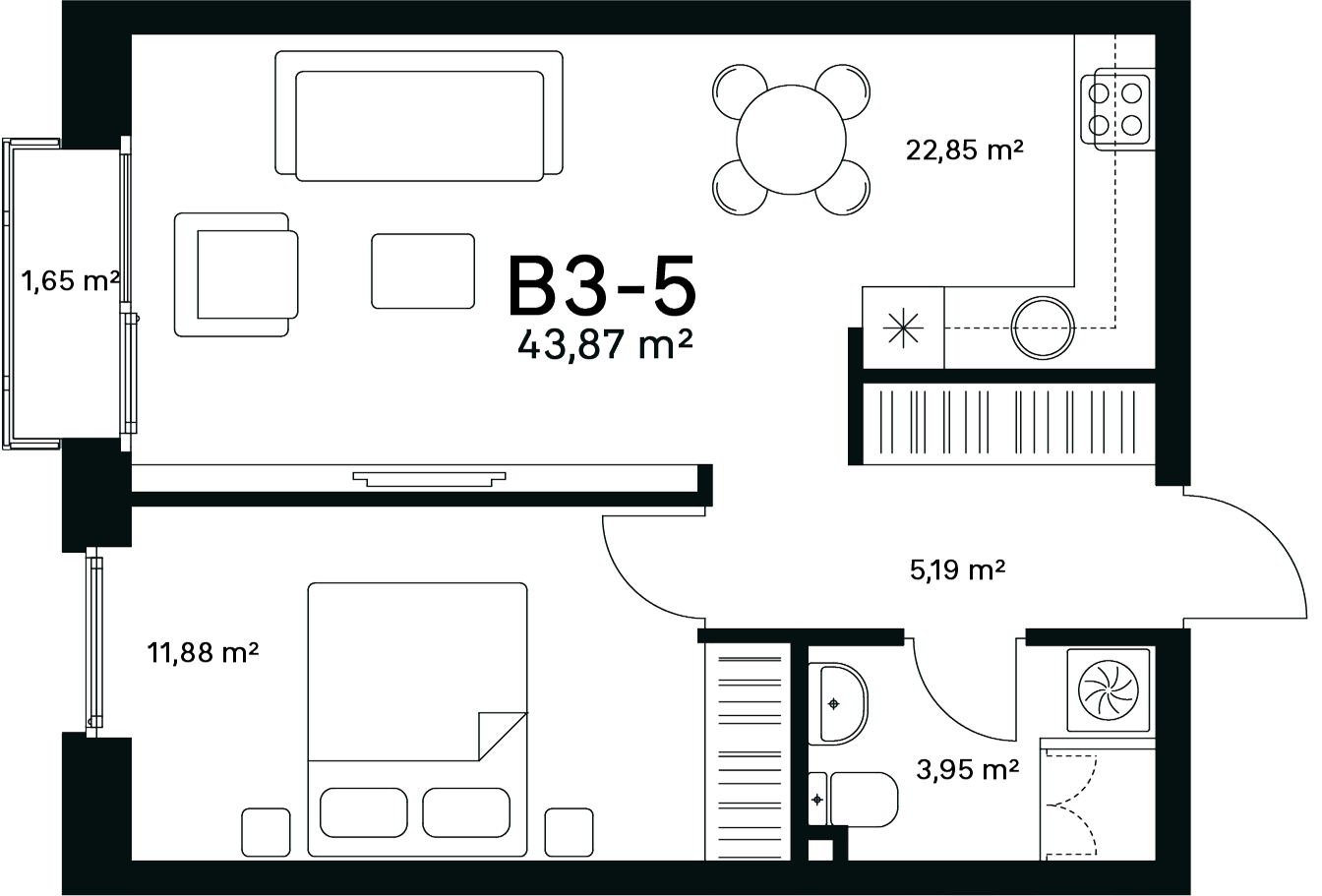 43,87 m²